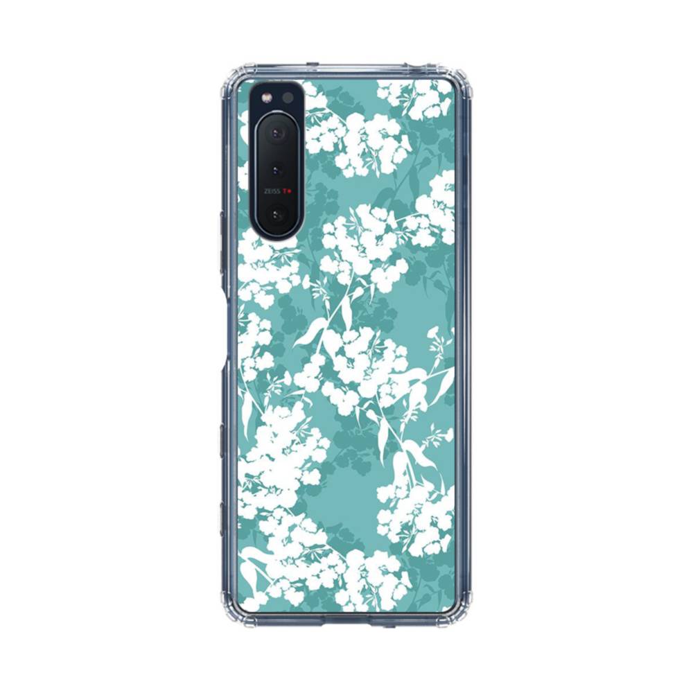 ライトシアン・花柄 Sony Xperia 5 II クリアケース