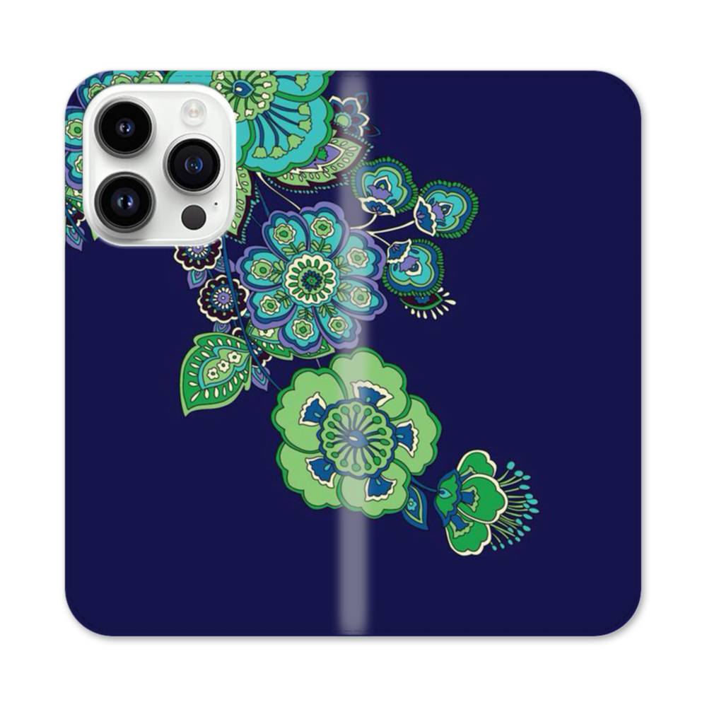 青緑の曼荼羅 iPhone 14 Pro 手帳型ケース