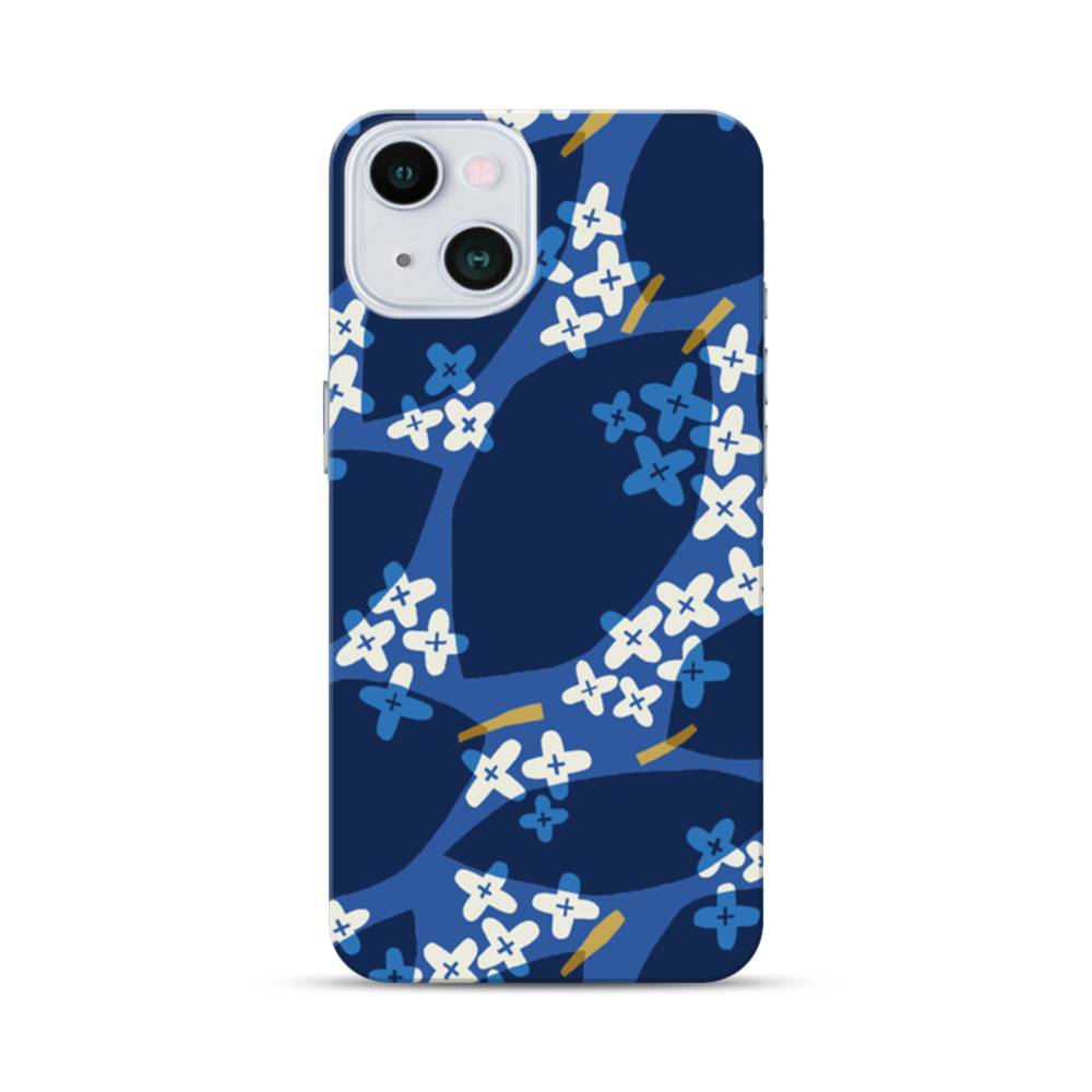 青い波紋・小花 iPhone 13 ハードケース