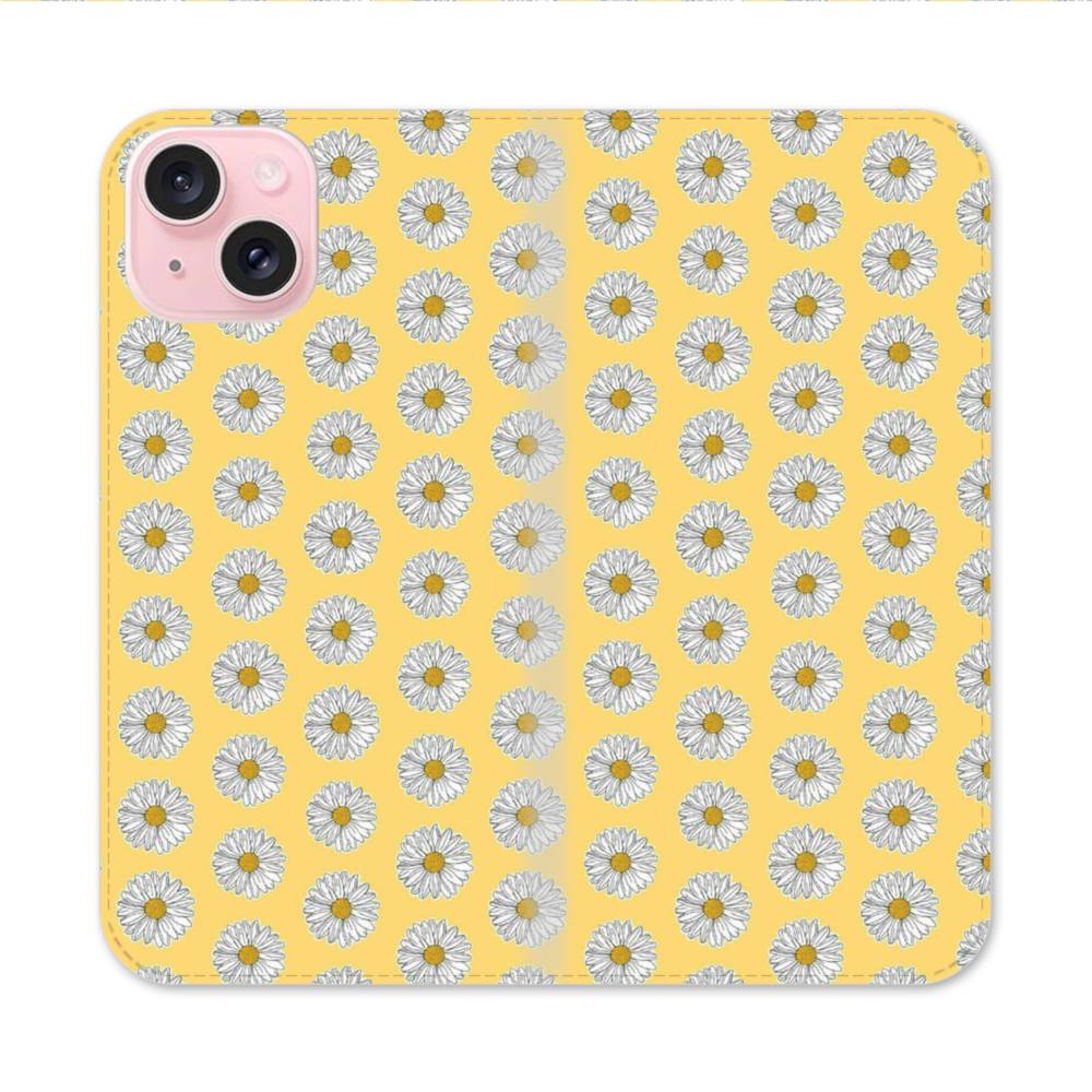 フラワー・カモミールのパターン iPhone 15 手帳型ケース