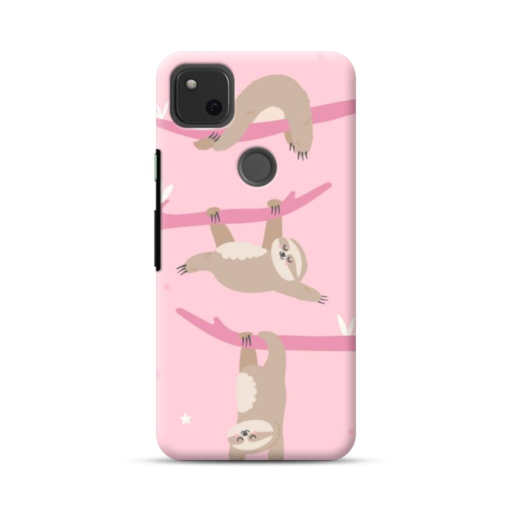ピンク背景・ナマケモノ Google Pixel 4a ハードケース