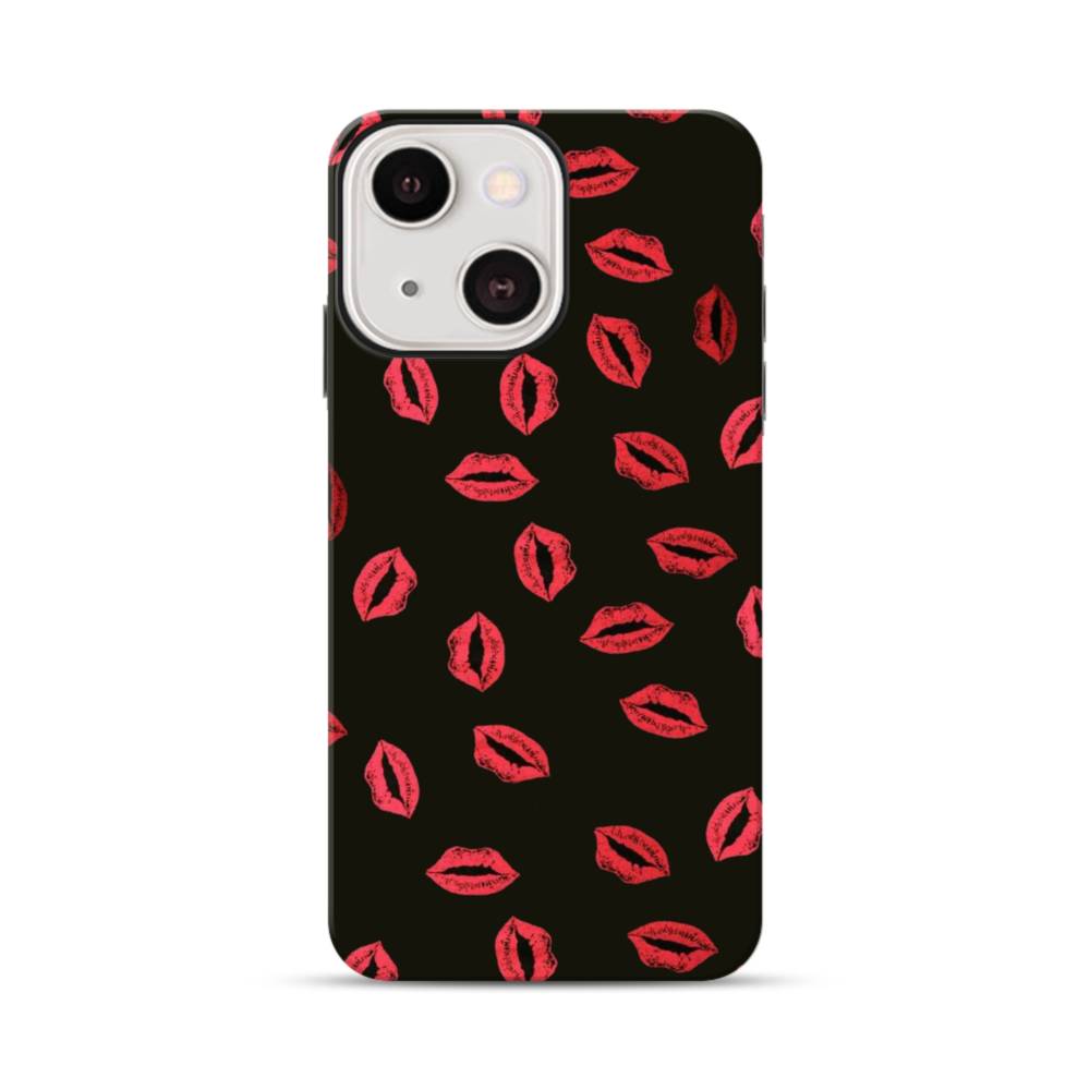 ハニー・キッス柄&ブラック iPhone 13 Mini タフケース
