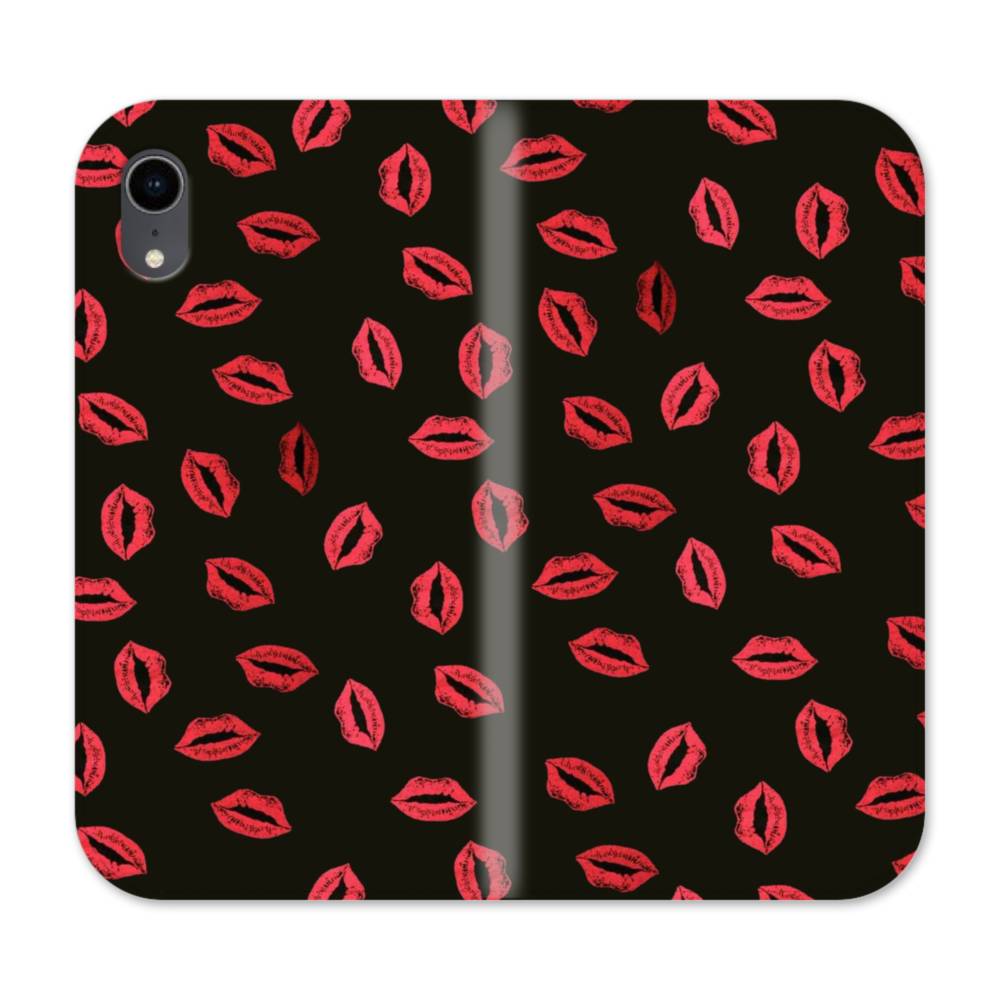 ハニー・キッス柄&ブラック iPhone XR 手帳型ケース