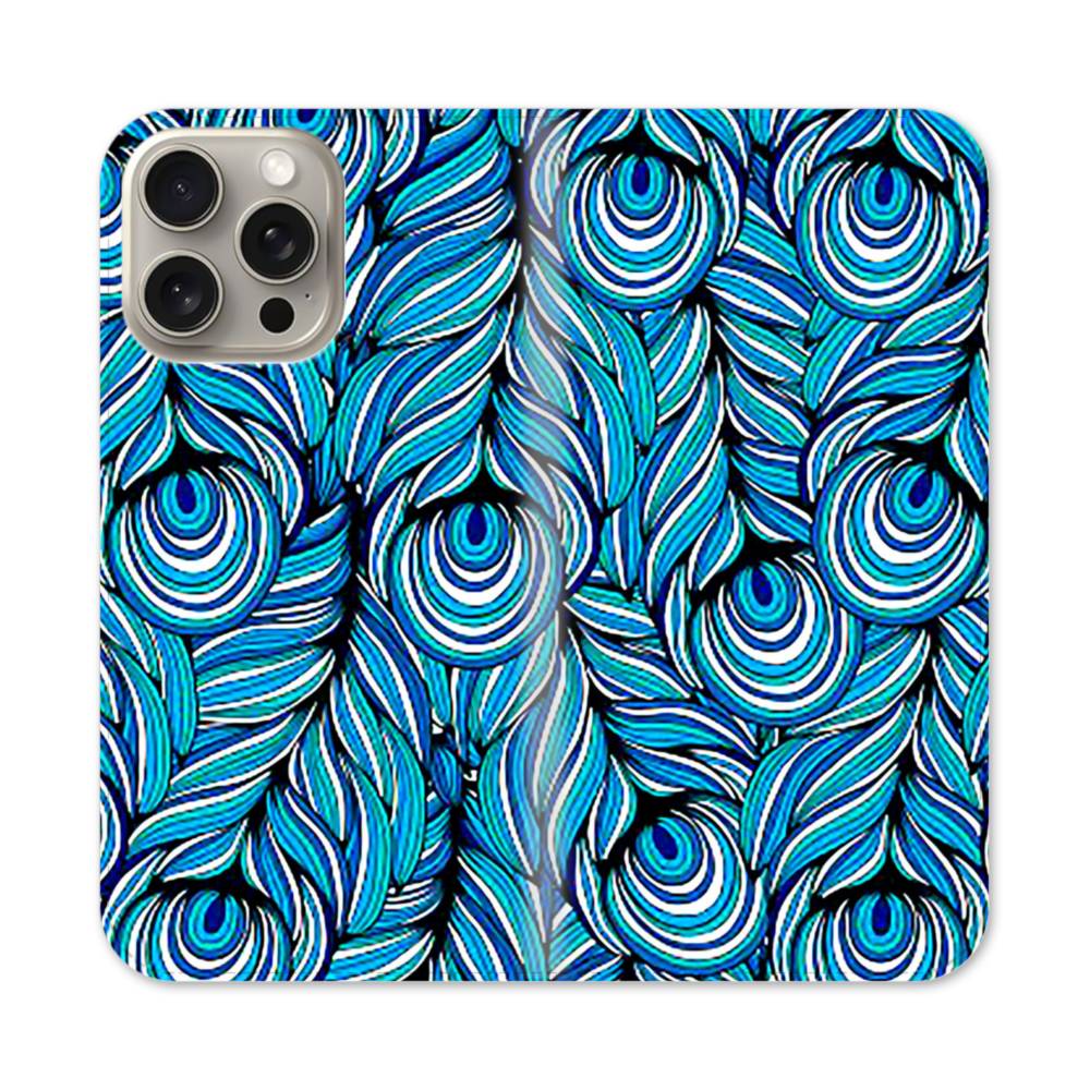 ブルー系・クジャクの羽 iPhone 15 Pro Max 手帳型ケース