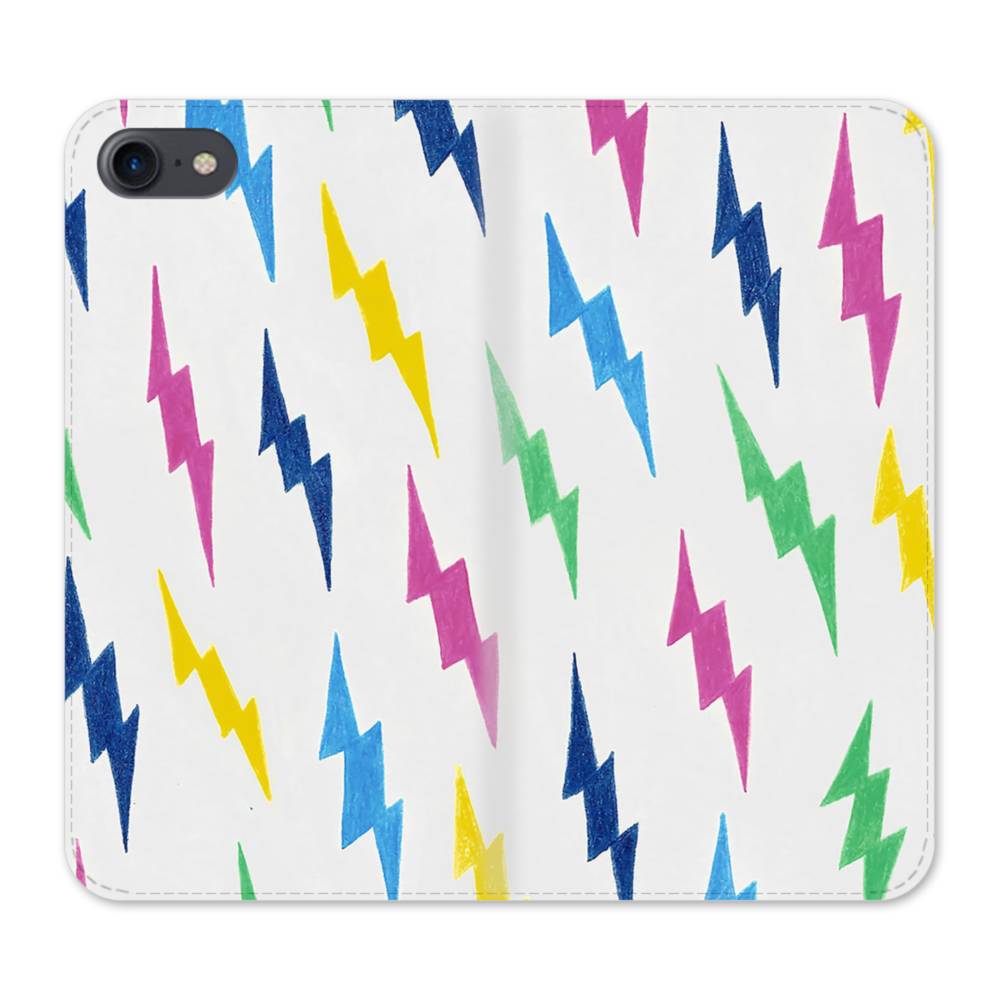 手書き風・カラーフル稲妻 iPhone SE (2020) 手帳型ケース
