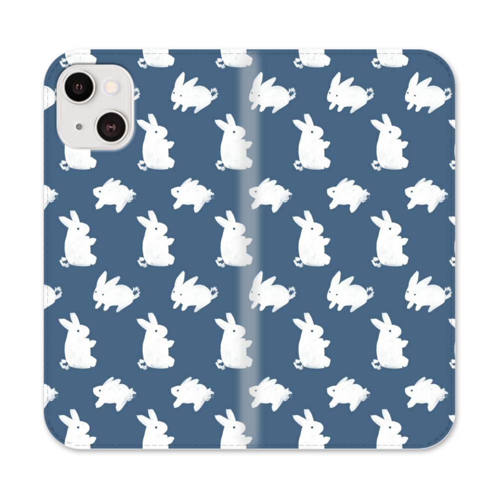 キュートなウサギちゃんのモチーフ iPhone 13 手帳型ケース