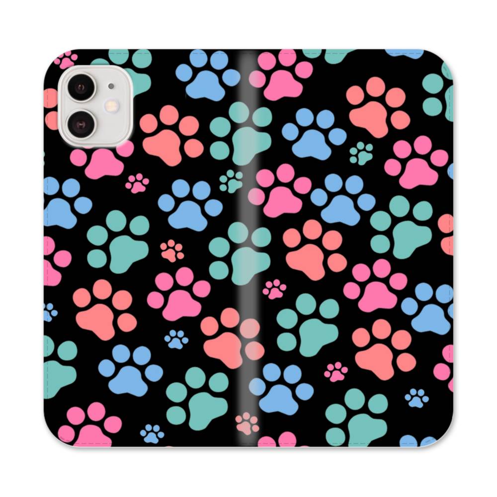 ハニー・キャッツ足跡&ブラック iPhone 12 Mini 手帳型ケース