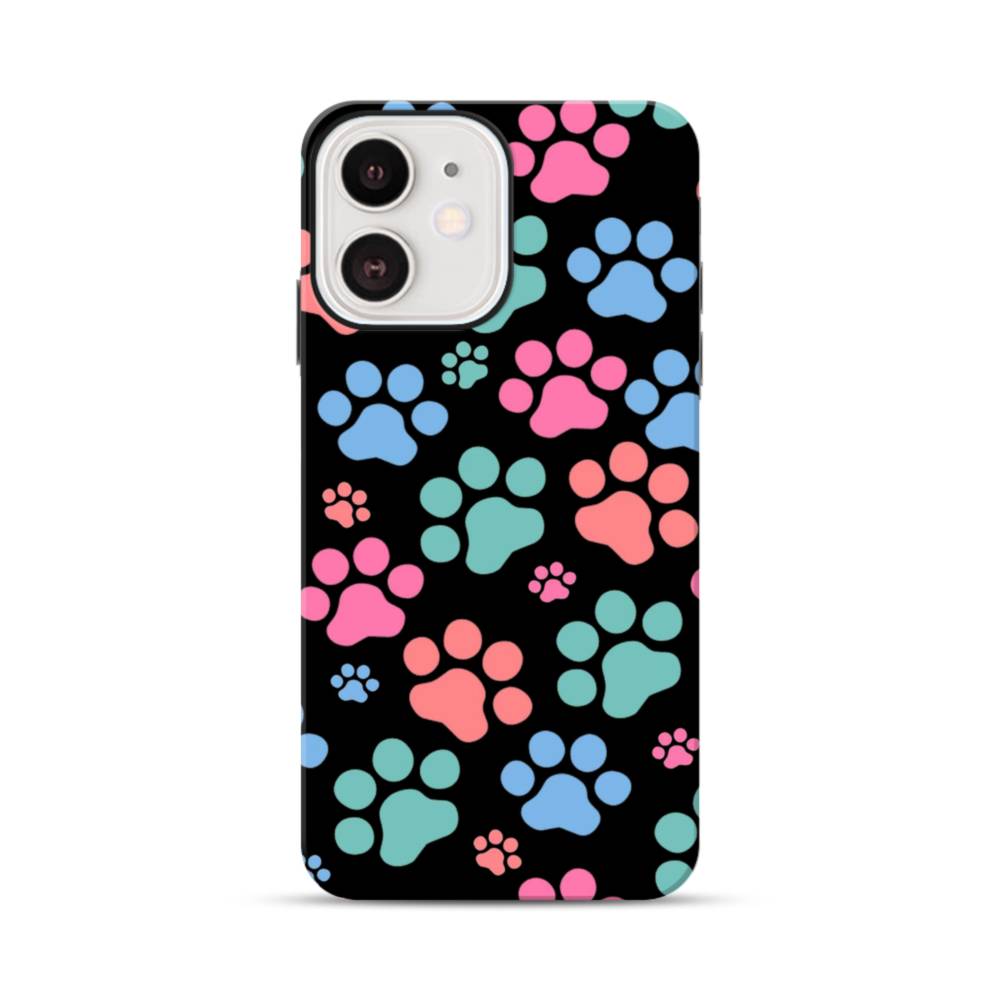 ハニー・キャッツ足跡&ブラック iPhone 12 Mini タフケース