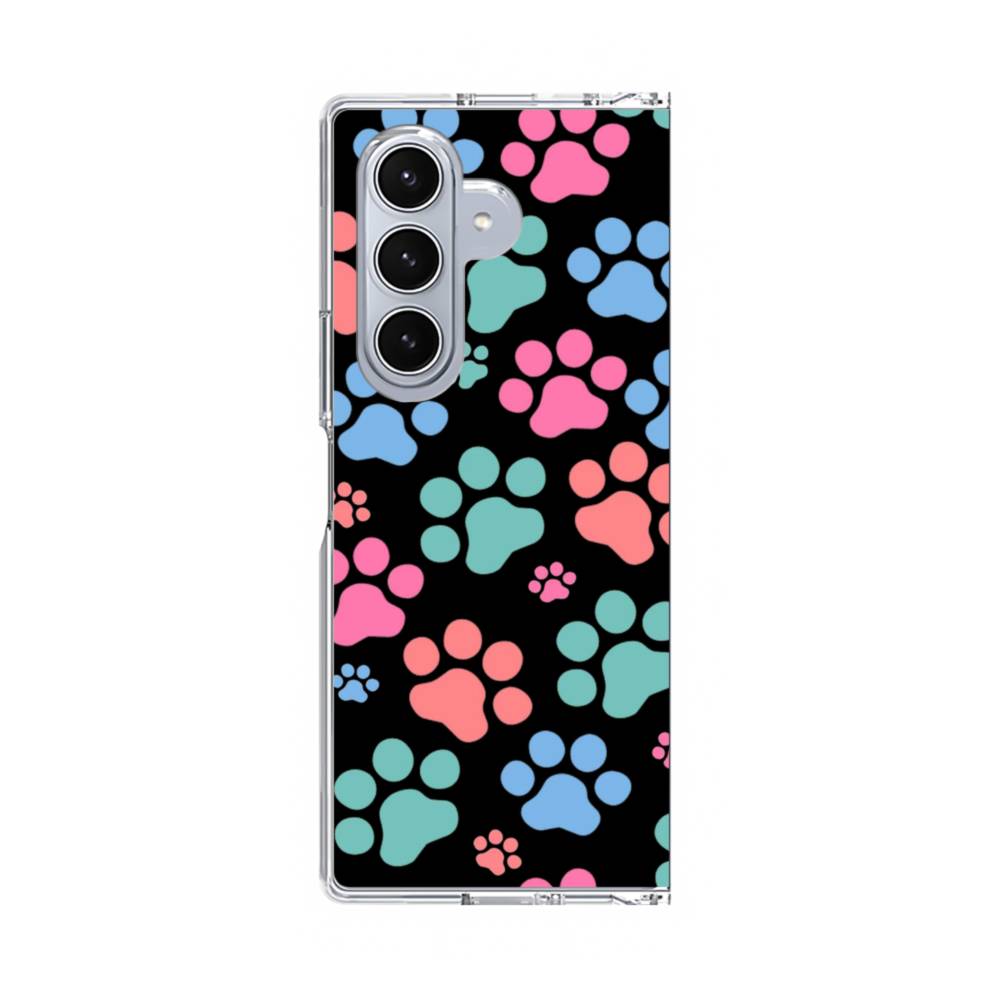 ハニー・キャッツ足跡&ブラック Samsung Galaxy Z Fold 7 クリアケース