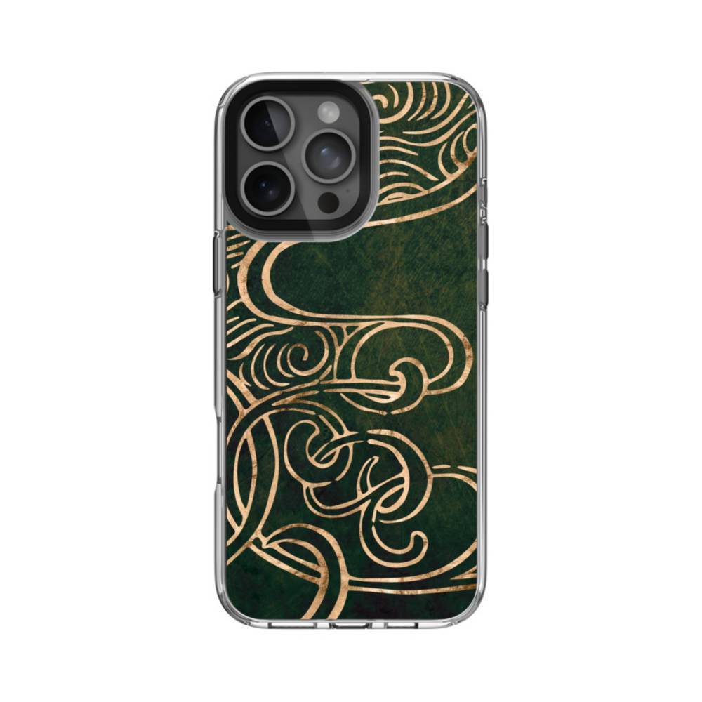 深緑背景のジャパンニーズ・パターン iPhone 16 Pro Max クリアケース