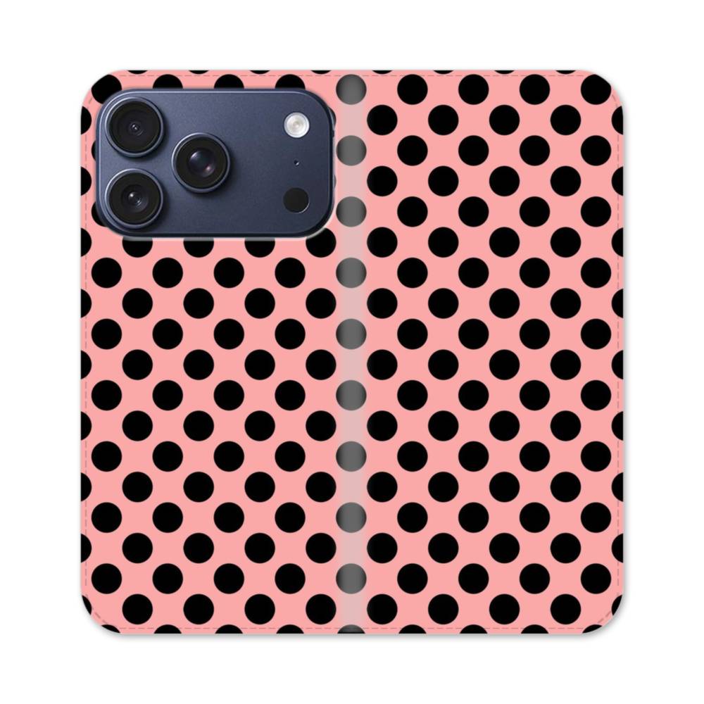 ハニー・ドッド柄:ブラック&ピンク iPhone 17 Pro 手帳型ケース