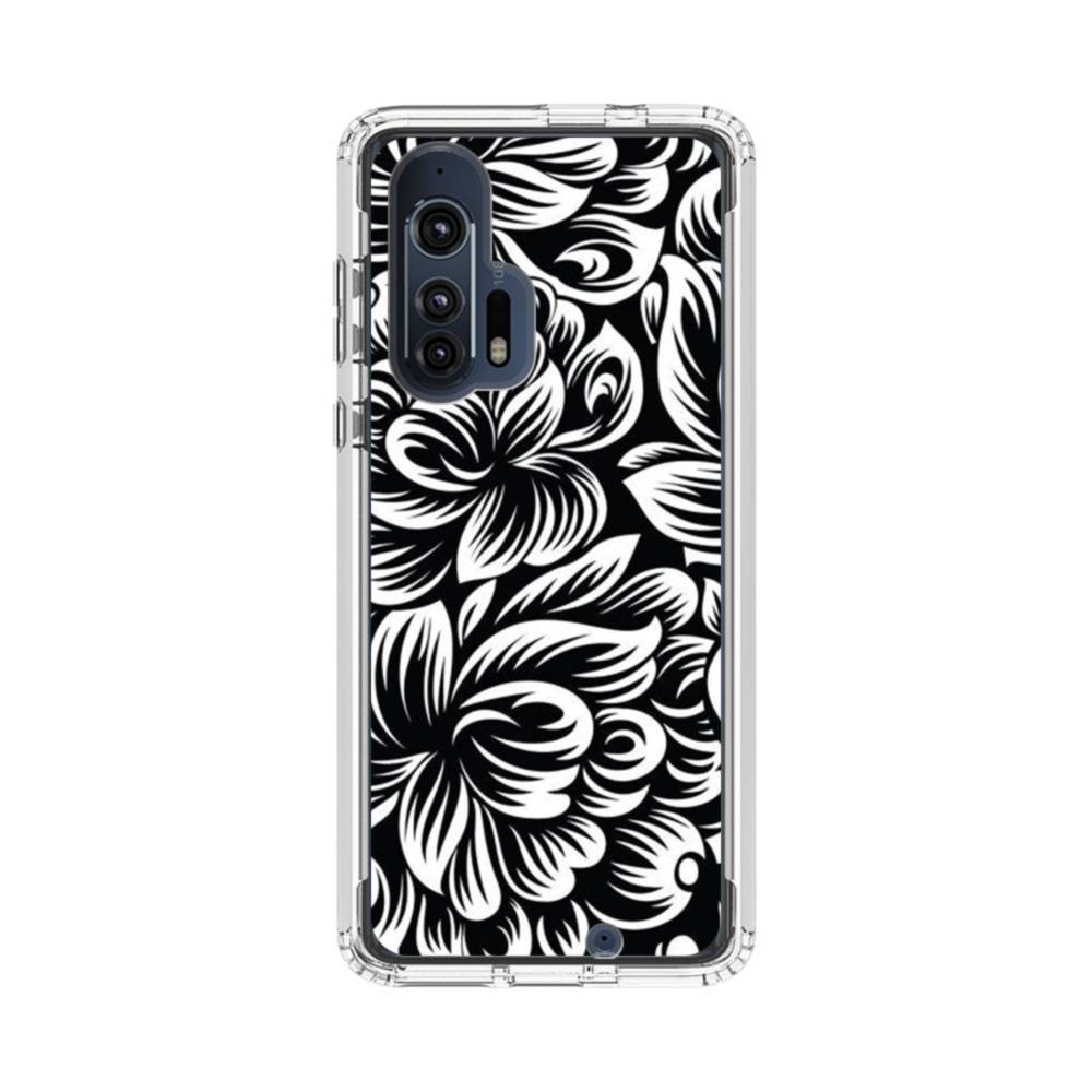 白黒・花柄 Motorola Edge Plus クリアケース