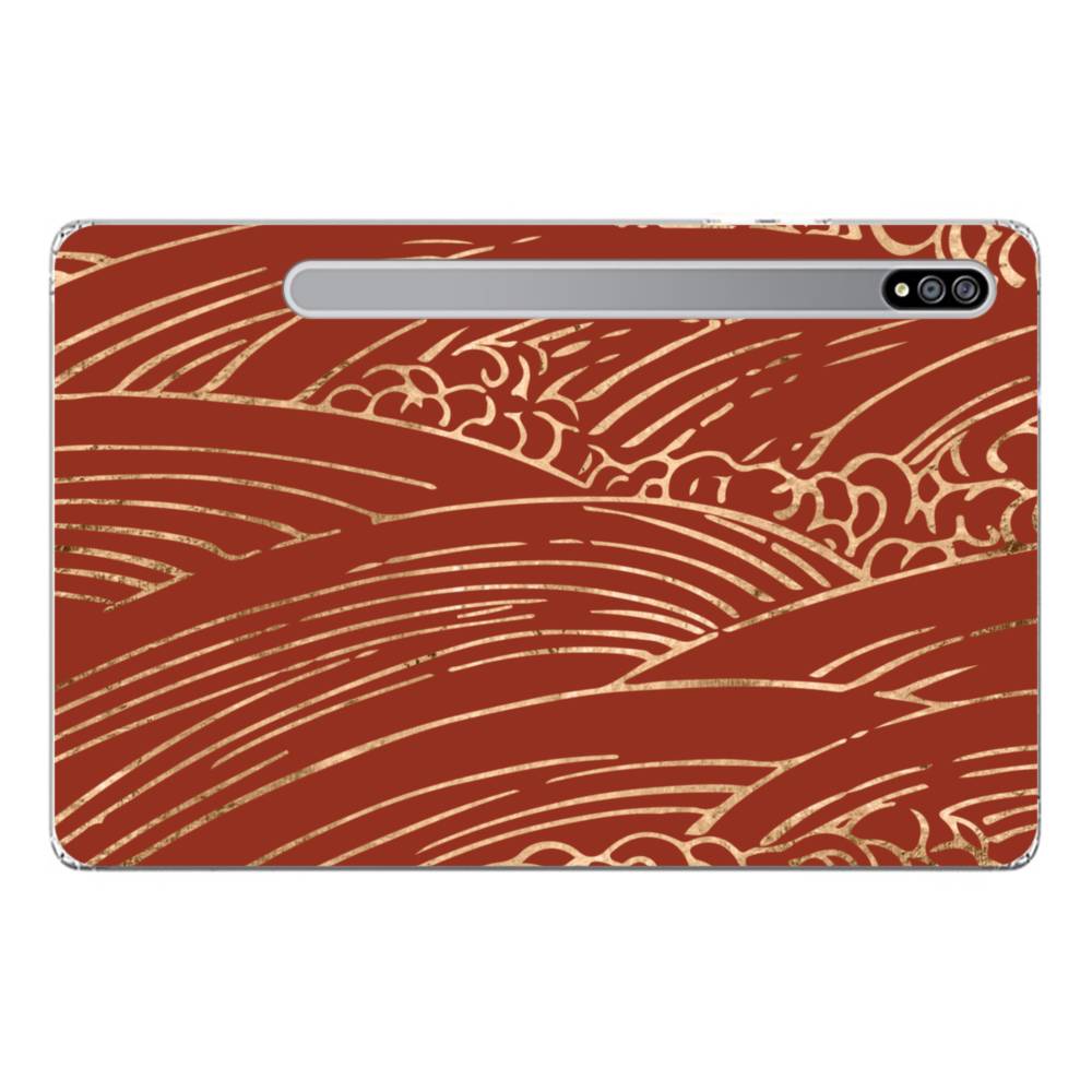 和柄・オリエンタルレッド背景の浪紋 Samsung Galaxy Tab S7 Plus (5G) クリアケース
