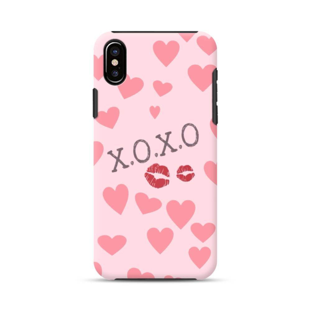 バレンタインデー・ハニー ハート柄&口付け iPhone XS タフケース