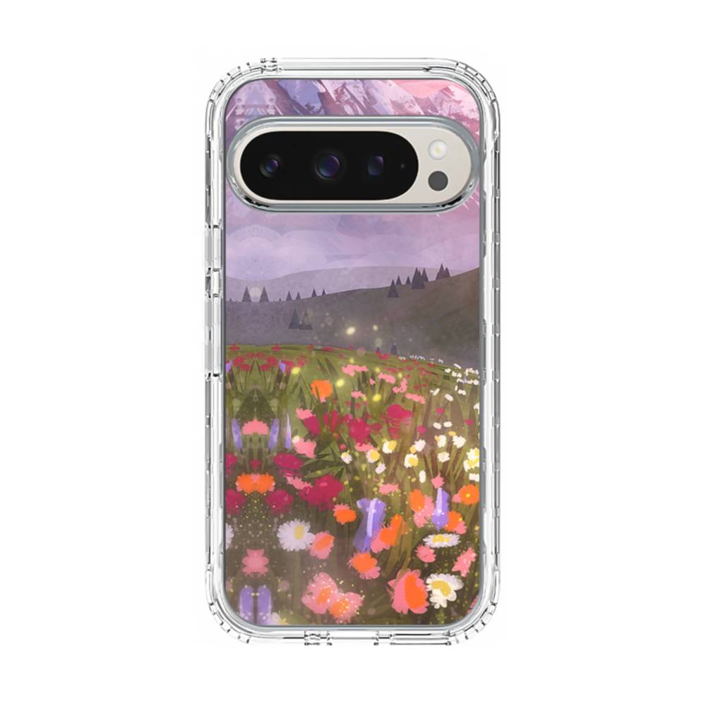 夕暮れのアルプス&野花 Google Pixel 10 Pro クリアケース