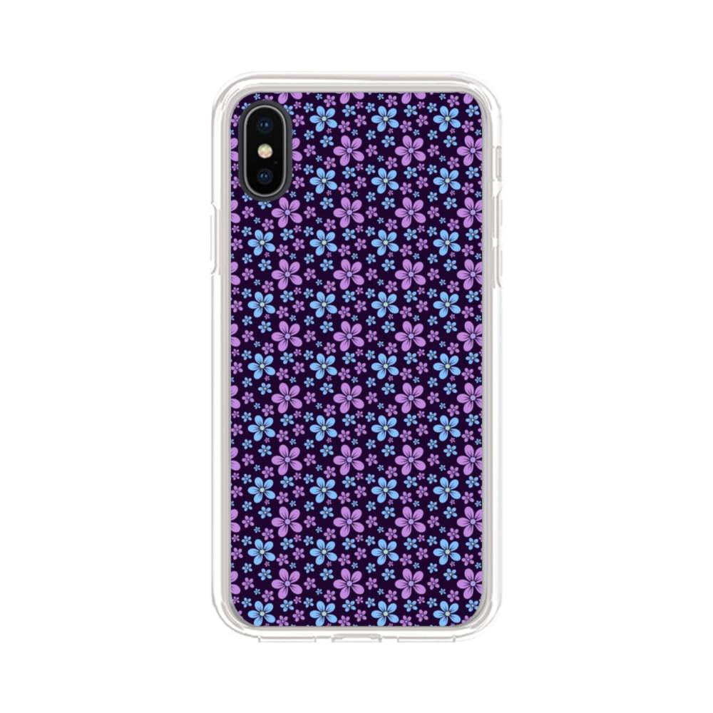 ハニー・花柄:パープル・ブルー・フラワー&ネイビー iPhone XS クリアケース