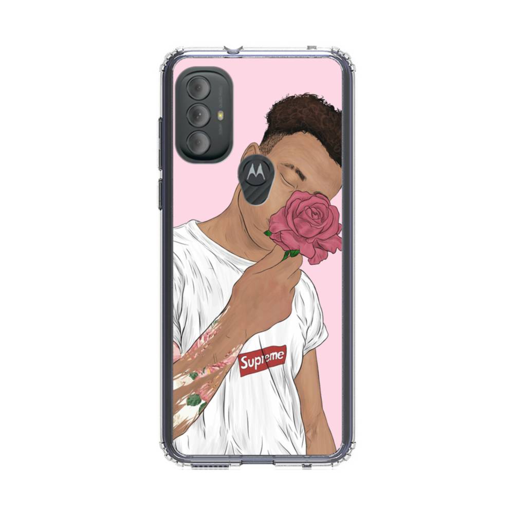 シュプリーム(supreme):ピンク&ボーイ&バラ Moto G Power (2022) クリアケース