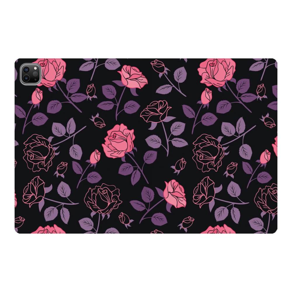 キュートな花柄:、パープル&バラのハーモニー iPad Pro 12.9 (2020) 手帳型ケース