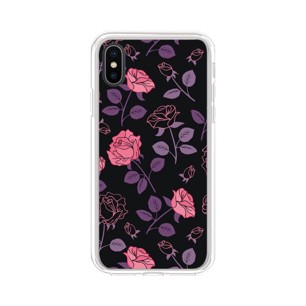 キュートな花柄:、パープル&バラのハーモニー iPhone X クリアケース