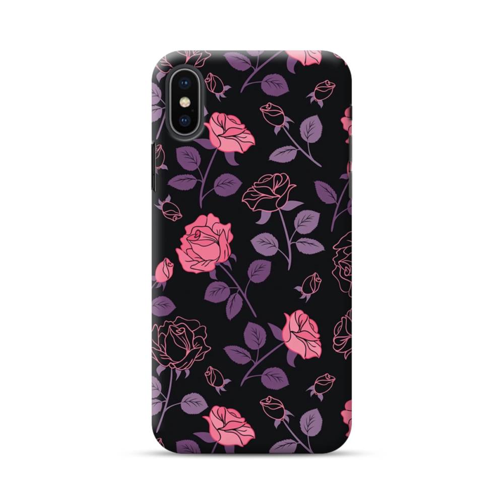 キュートな花柄:、パープル&バラのハーモニー iPhone XS ハードケース