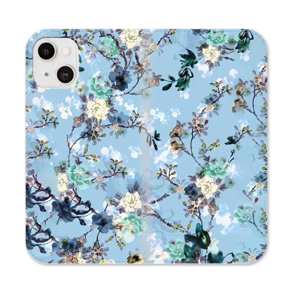 水墨画風:花柄 iPhone 13 手帳型ケース
