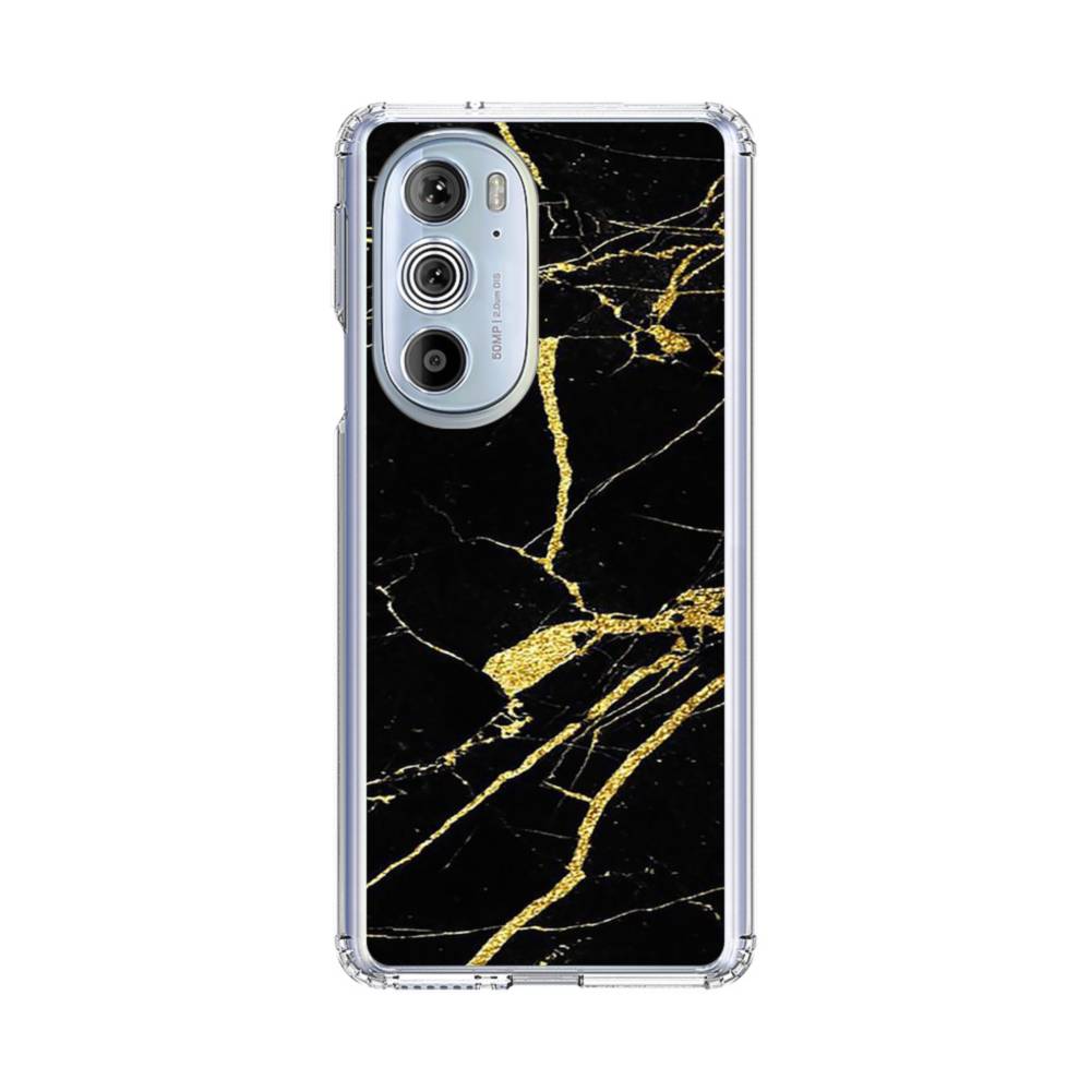 ゴールド ブラック マーブル Motorola Edge Plus (2022) クリアケース