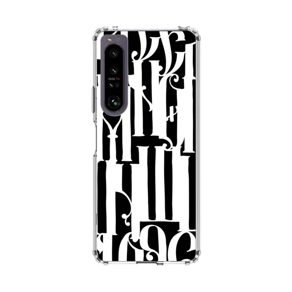 ブラック・ホワイト・アルファベット Sony Xperia 1 IV クリアケース