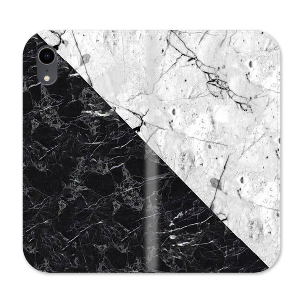 ミックス・マーブル:白&黒 iPhone XR 手帳型ケース