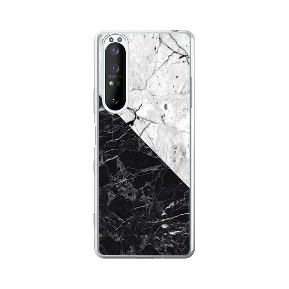 ミックス・マーブル:白&黒 Sony Xperia 1 III クリアケース