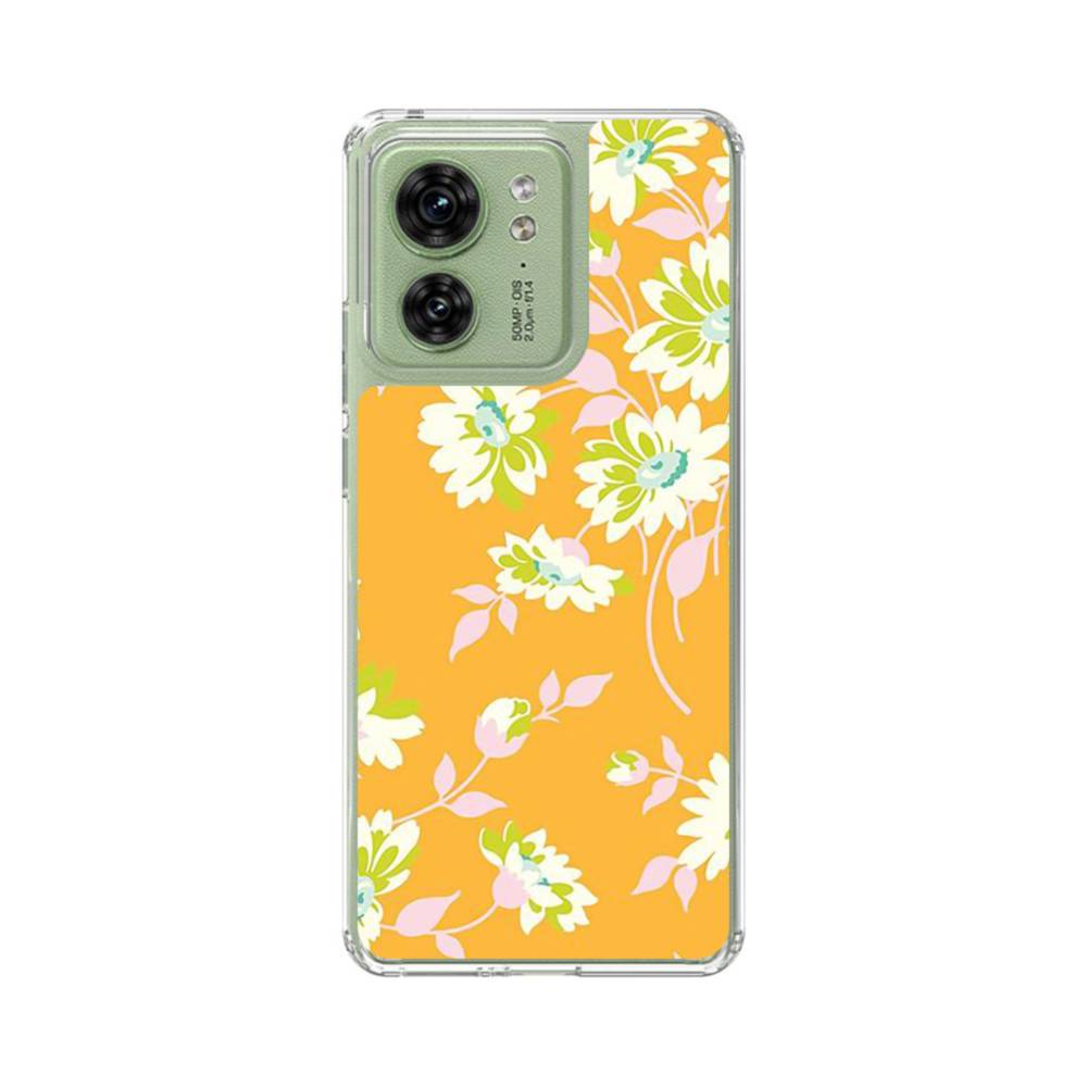 オレンジ背景の花柄 Motorola Edge 40 クリアケース